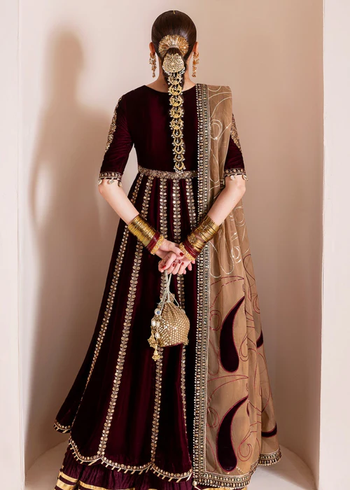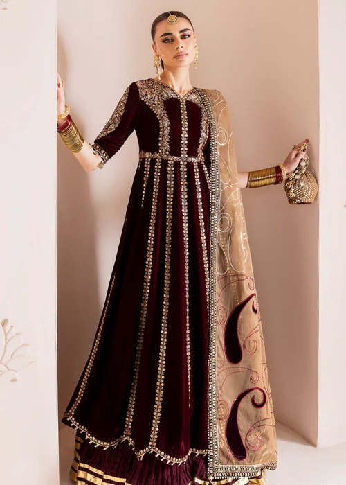 Embroidered Pure Velvet Front Yoke Embroidered Pure Velvet Front & Back Panels Embroidered Front & Back Yoke Borders (1PC) Embroidered Pure Velvet Sleeves & Sleeves Border Dyed Pure Velvet Sleeves (2PC) & Sleeves Border Dyed Pure Velvet Back Yoke (1PC) Embroidered Organza Dupatta with Laser Technique (2-2.25M) Embroidered Velvet Dupatta Borders Dyed Raw Silk Crushed Bottom (2-2.25M)