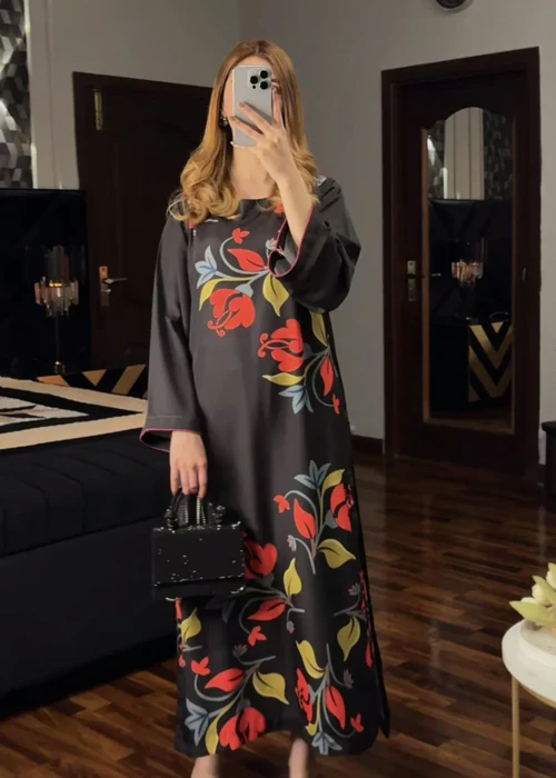 Color: Black Fabric: Soft Crepe (Breathable Fabric) Type: Stitched (Ready To Wear)